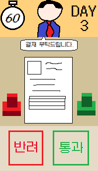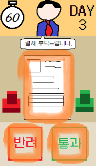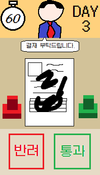 - 조작법: 통과, 반려 두개의 버튼과 서류의 장애물을 터치