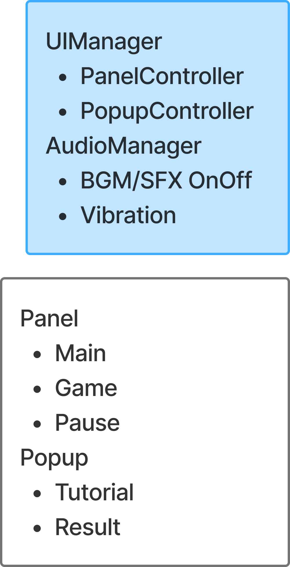 --> UI Manager가 PanelController와 PopupController를 제어하고, 각 Controller에서 Panel과 Popup을 관리하도록 구현 예정