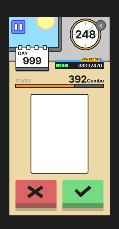 - 점수와 배율을 표시하고, 그 점수가 신기록이라면 위에 "New Record!" 가 표시된다.