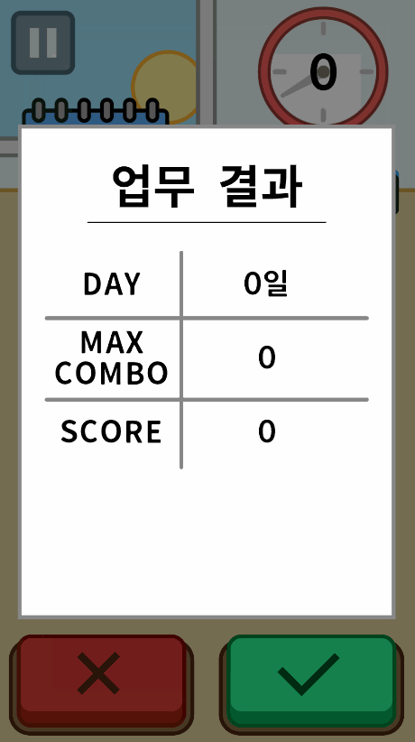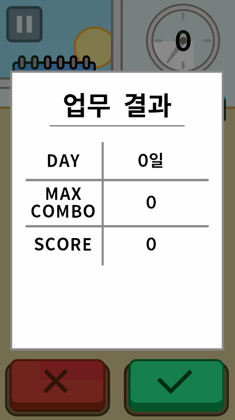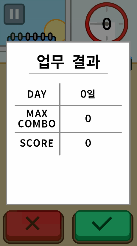 - 일과시간 실시간 감소주기 : 난이도에 따라 정해진 시간 당 1씩 줄어들도록, (1초 / 0.6초 / 0.2초)