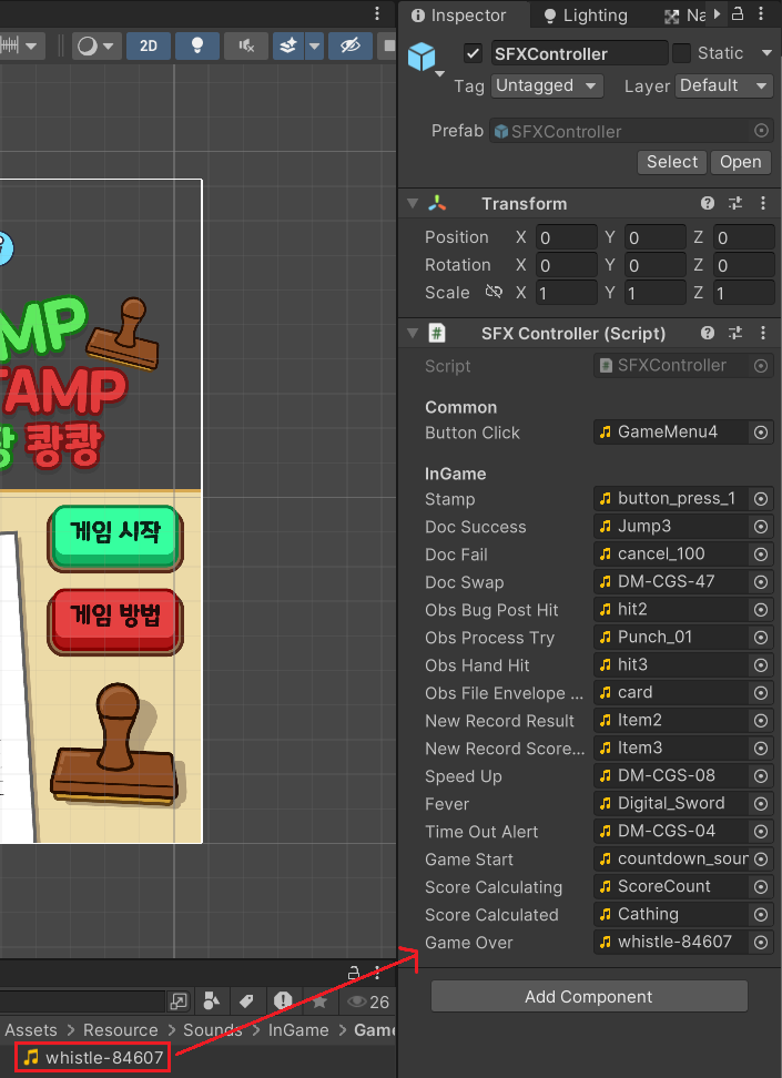 --> 호루라기 소리로 무료 SFX 중에 하나 찾아서 게임에 적용했다.