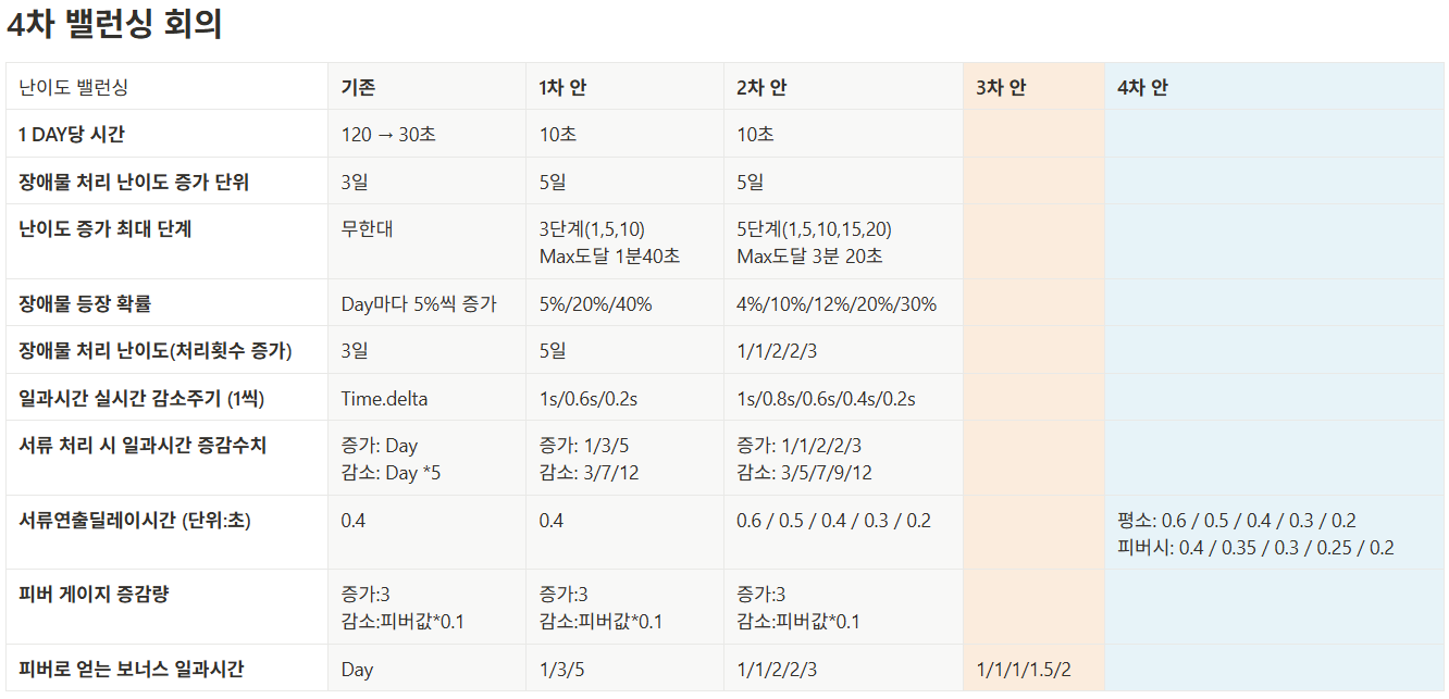 --> 5단계에서 일과시간 비축량이 너무 늘어나는 상황이 아니라 잃은 시간을 한 턴 정도 복구하는 정도에 그친다면 5단계는 문제가 없음.
