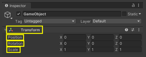 ※ Scene 상에 존재하기 위해서 모든 GameObject가 갖고 있는 Component