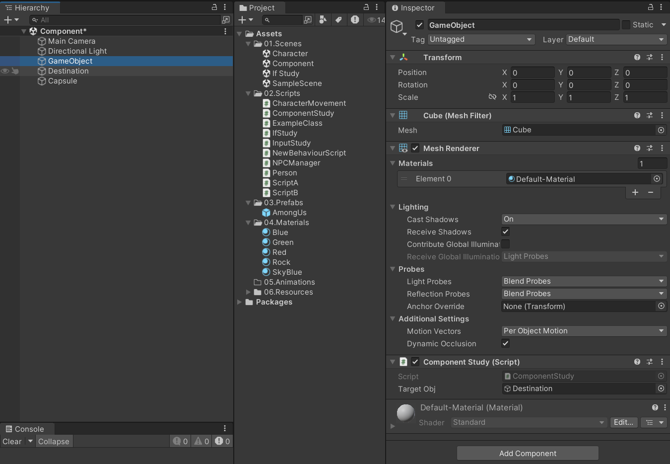 : GetComponent<컴포넌트 이름>().내부 변수 or 내부 함수;