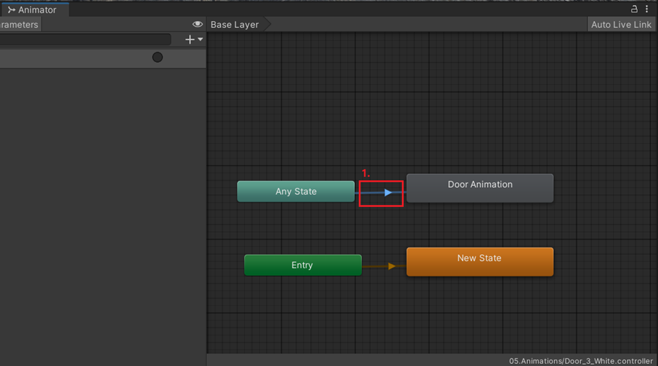 3. 문이 저절로 열리는 것을 막기 위해, Animator에서 Empty State를 만들어 기본 State로 지정