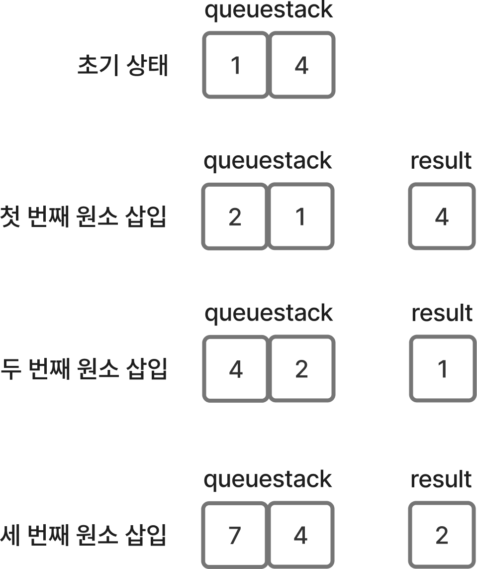 - for 반복문을 통해 i 번 자료구조가 queue라면 해당 원소를 list 의 마지막에 추가하여 큐스택의 초기 상태를 세팅한다.