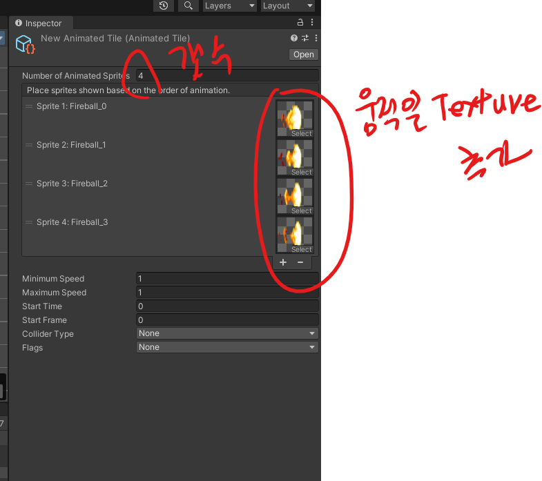 >> Create로 Animation 생성 --> 넣고싶은 만큼 넣으면 그게 Animation 프레임이 된다. (0 ~ 13까지 추가)