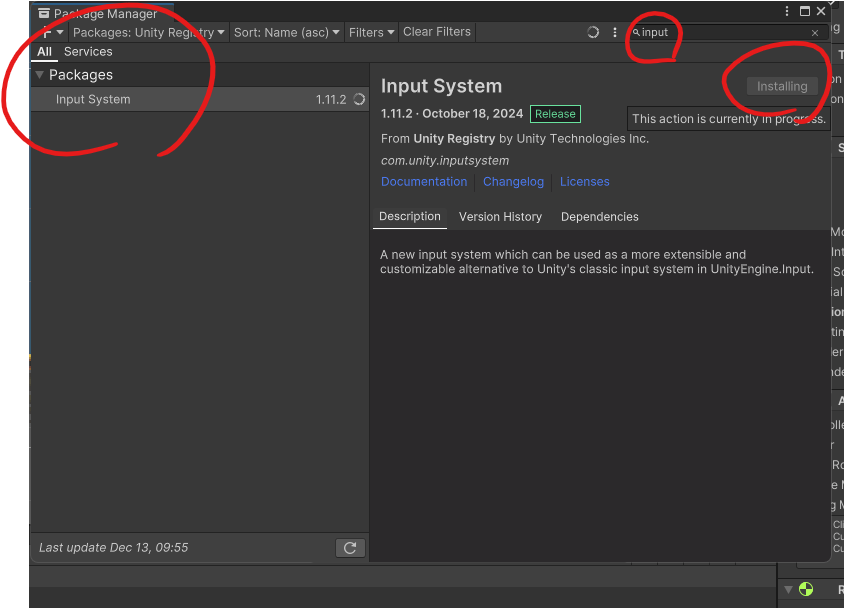 >> Package Manager에서 Packages를 Unity Registry로 바꾸고 'Input System'을 검색하여 Install