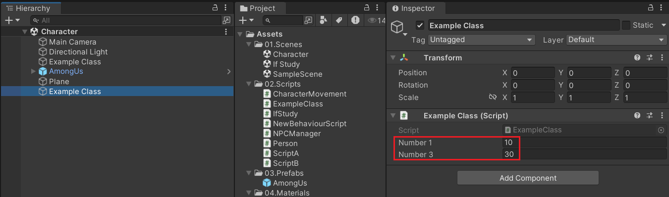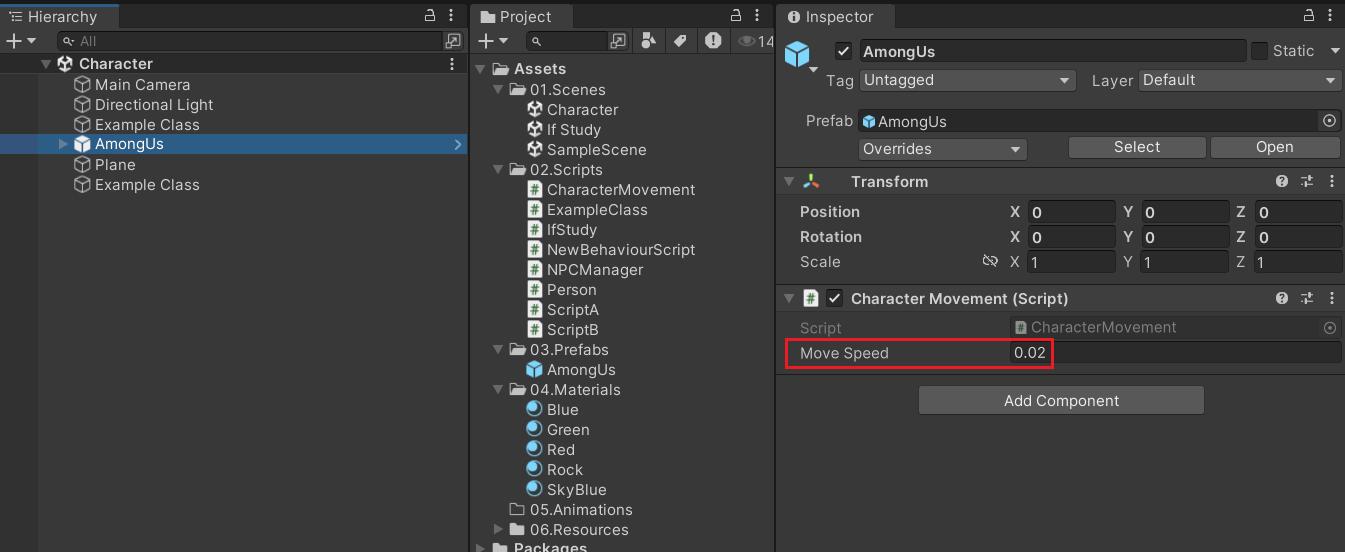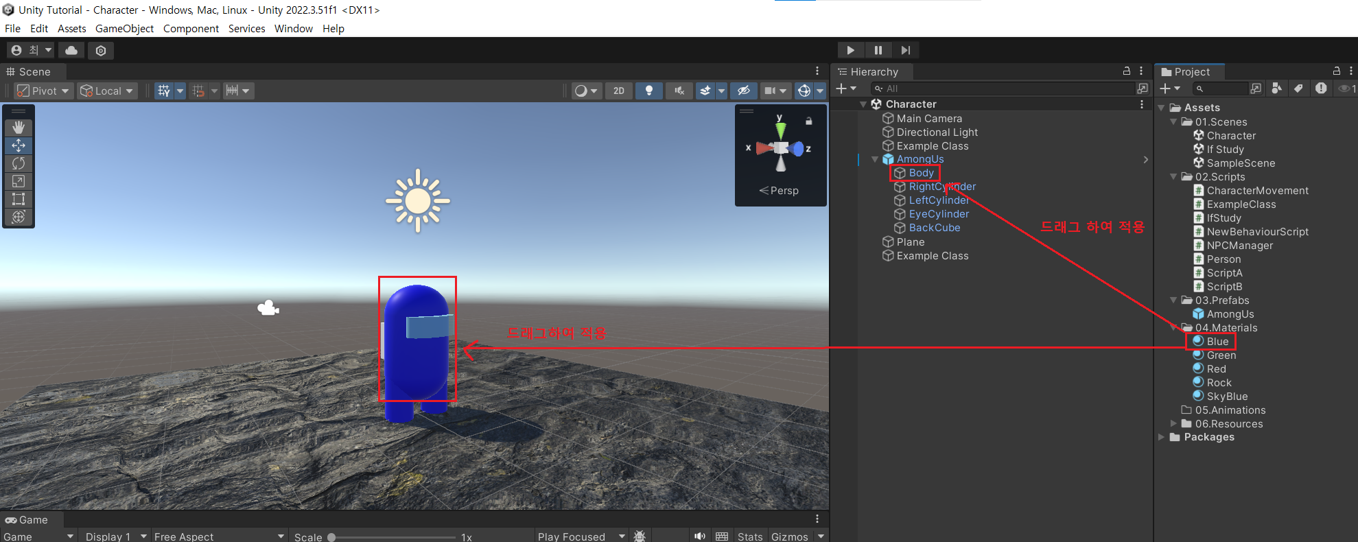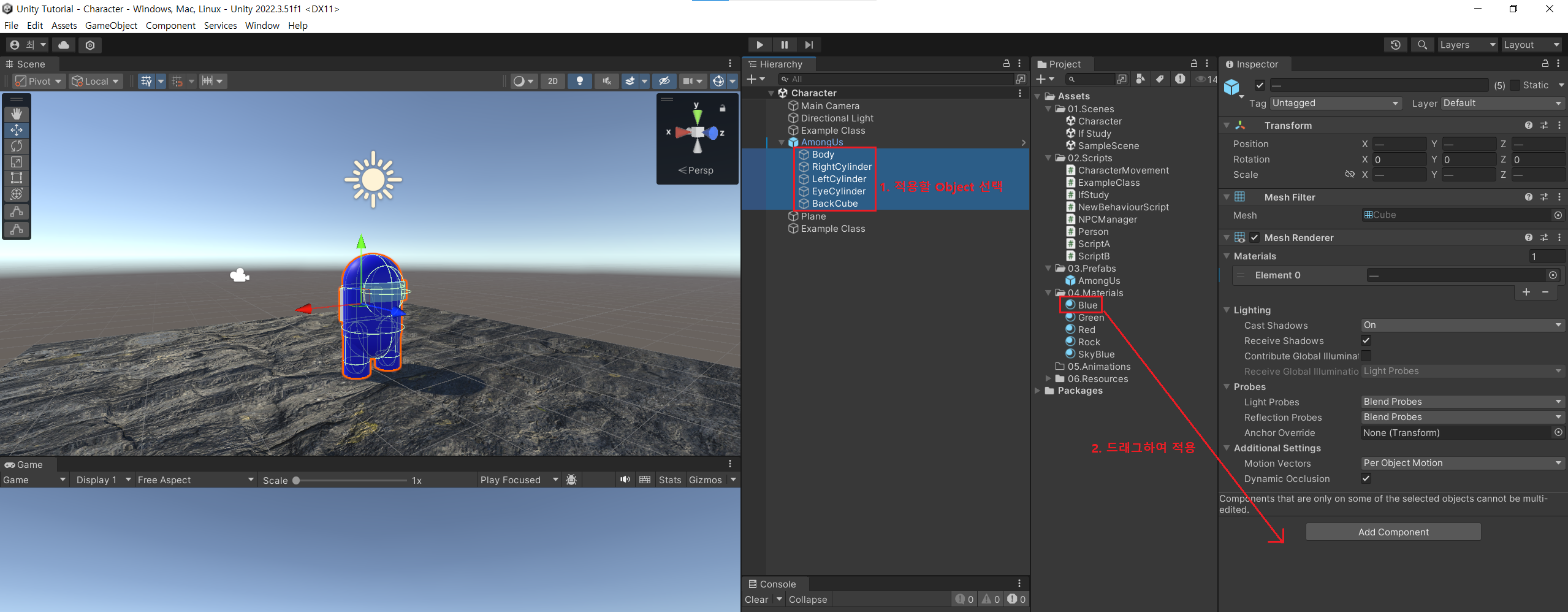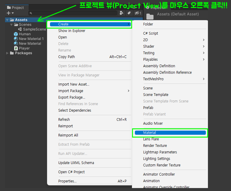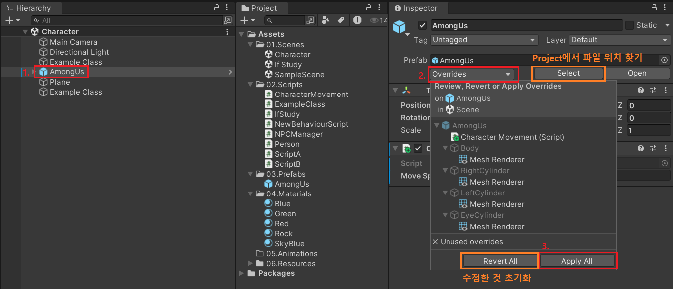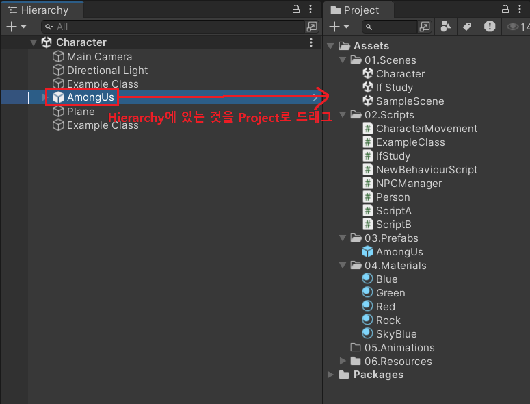: Project에서 더블 클릭하면 따로 수정 가능 --> Scene에 있는 모든 개체에 한꺼번에 적용됨
