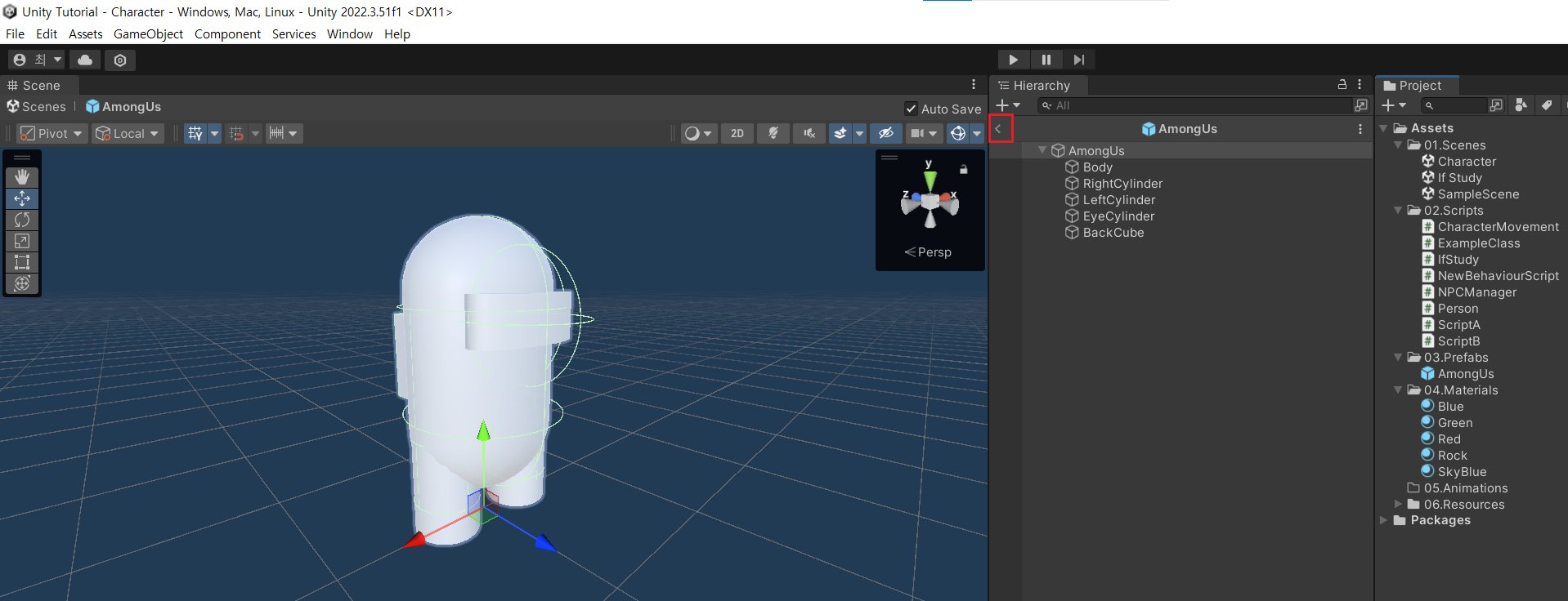 : Hierarchy의 Primitive Object를 활용하여 만들기 (Capsule, Cylinder, Cube 등)