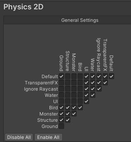: 기본적으로 땅 <-> (몬스터, 구조물, 새) 는 충돌해야 맵에 서있을 수 있음