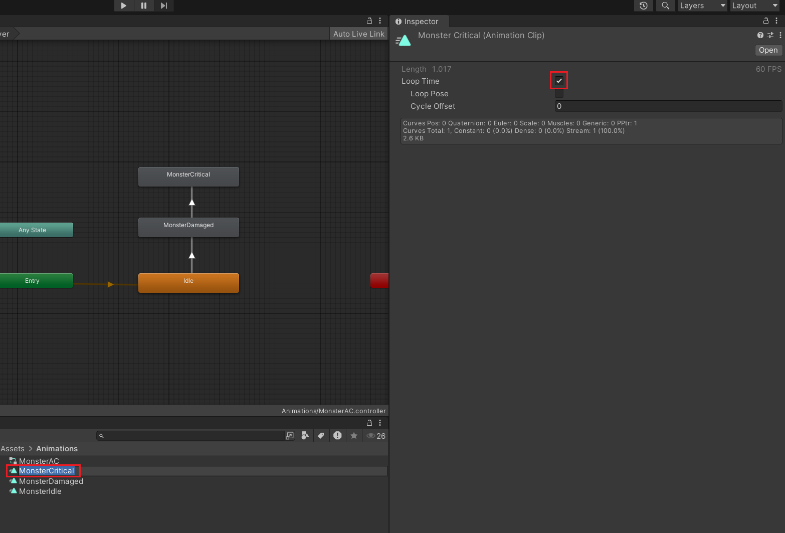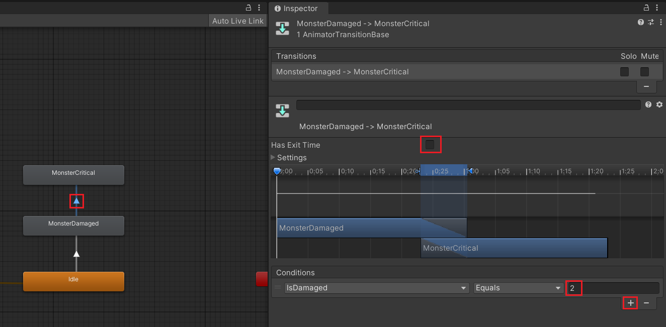 ※ Has Exit Time : 체크 해제하면 애니메이션 전환 딜레이가 사라짐