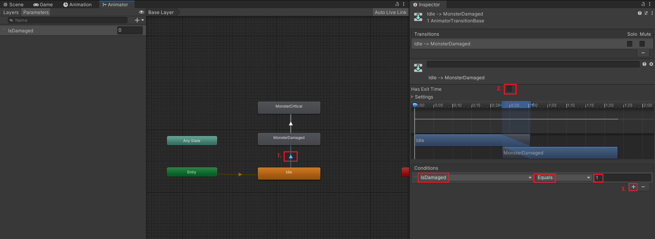 animator.SetInteger(IsDamaged, 2); // Animation Parameters 변경