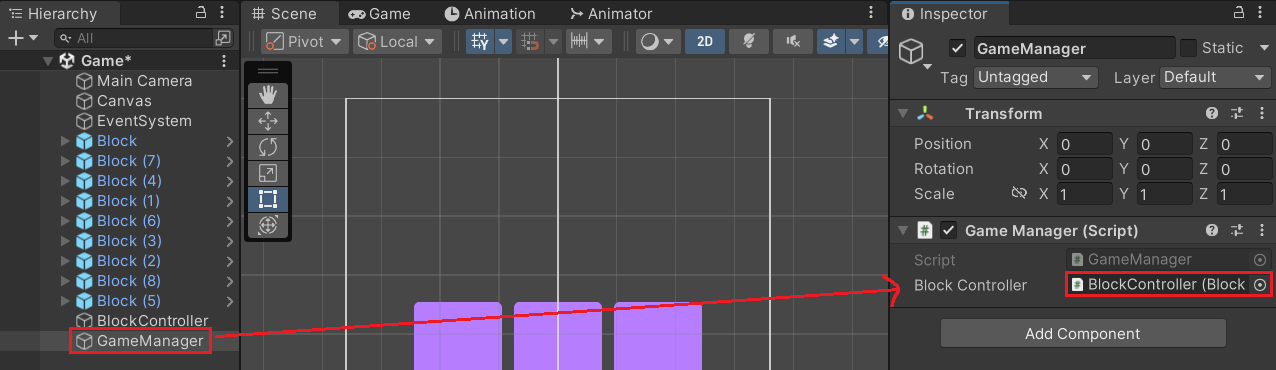 : 빈 게임 오브젝트에 BlockController.cs 추가 및 바인딩