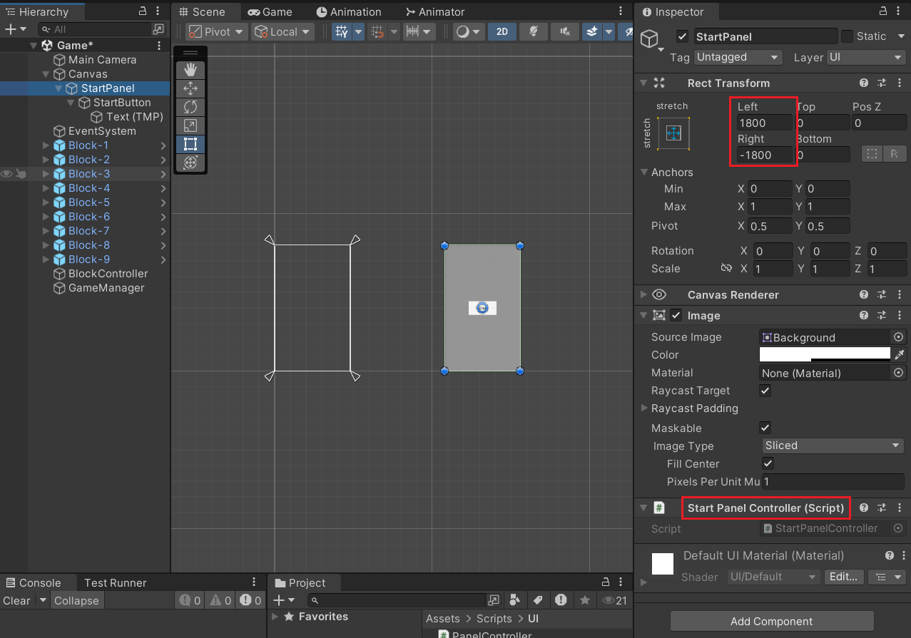 >> StartPanel이 원할 때 등장하게끔 옆에 치워두고 StartPanelController.cs 추가