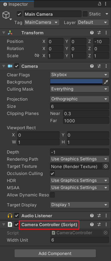 >> 화면 비율에 따라 자동으로 카메라의 Size를 수정해주는 코드 작성