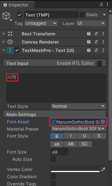 --> Button의 Text도 폰트 바꾸고 '시작'으로 변경