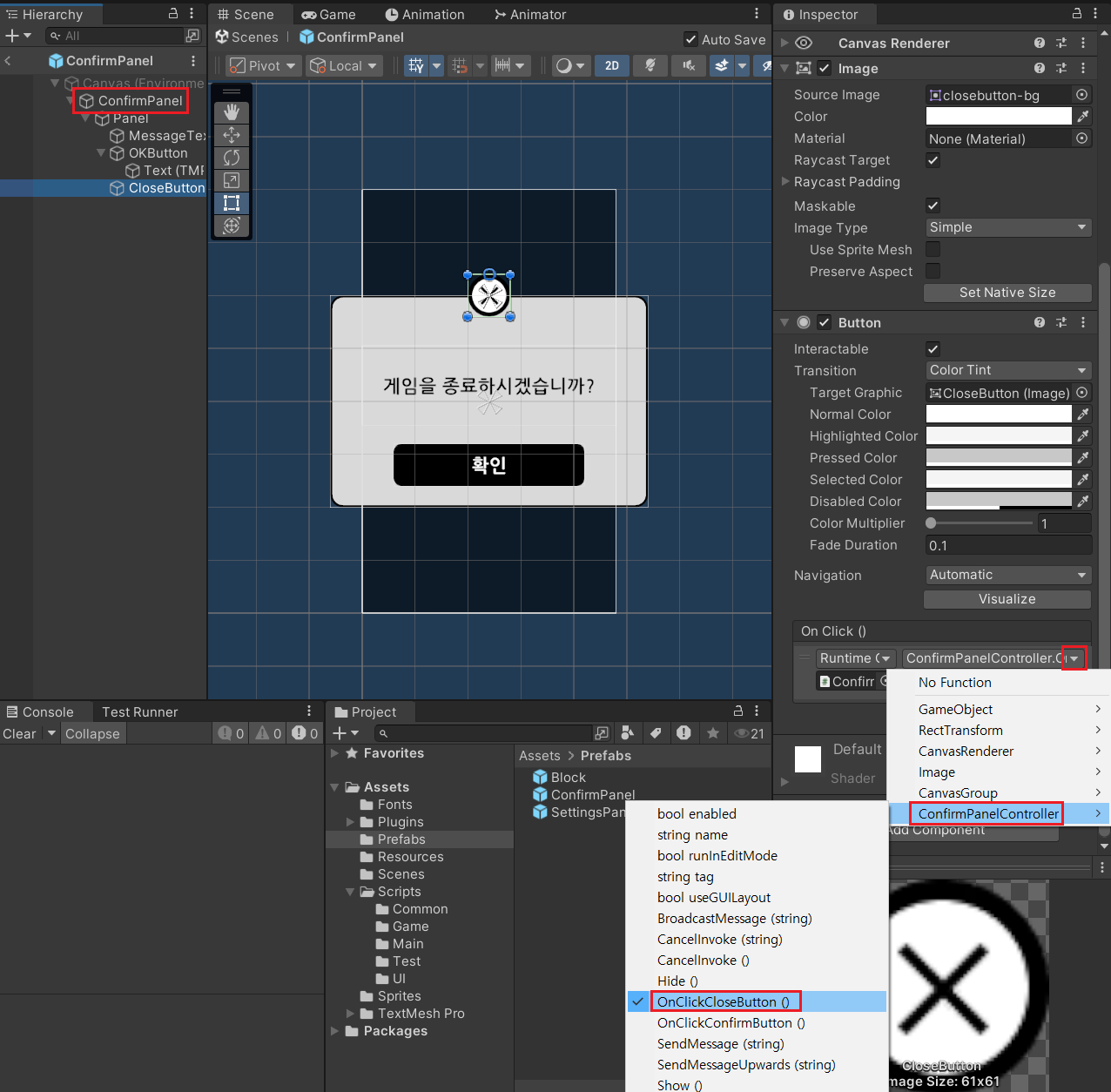 >> Close Button의 OnClick() 바인딩