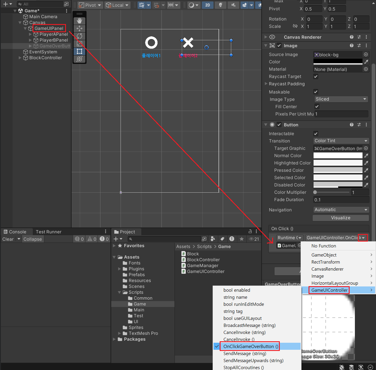 >> GameOverButton 바인딩