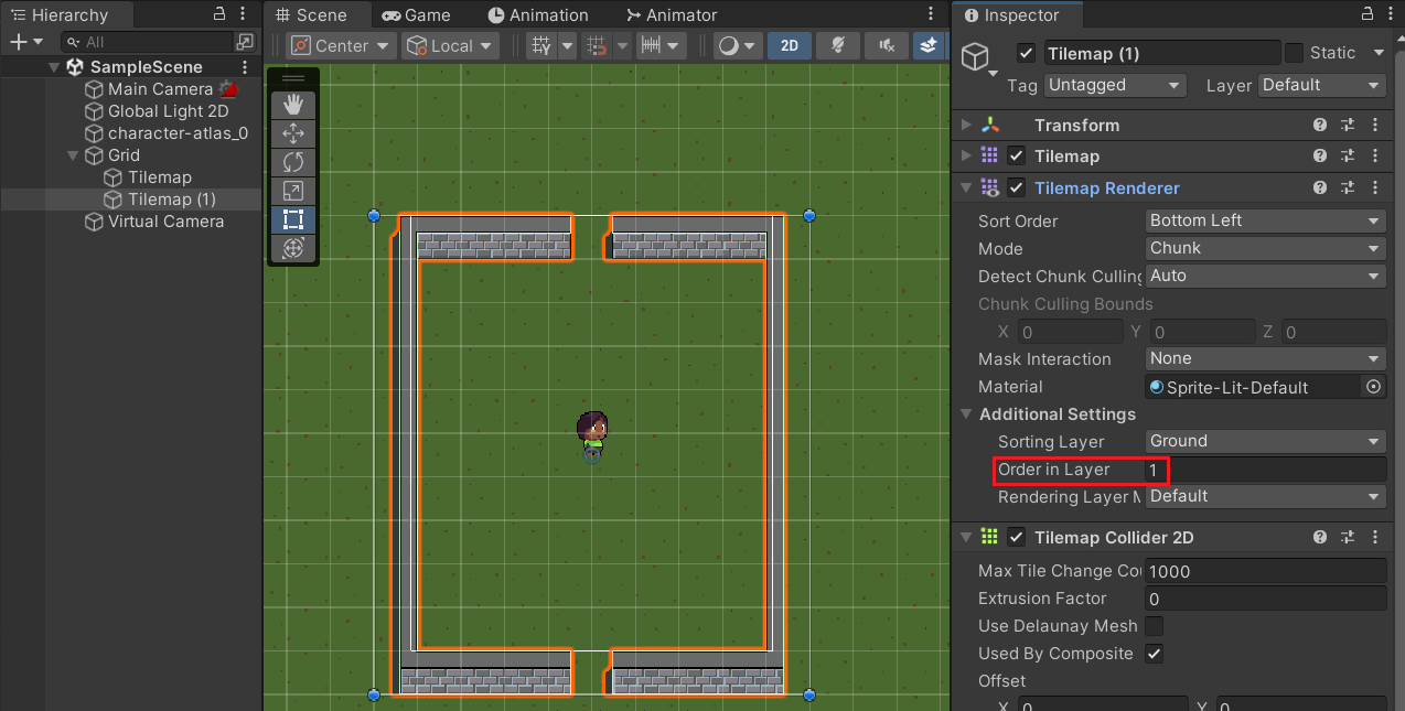 >> Tilemap을 더 추가하면 Tile을 중첩하여 그릴 수 있음