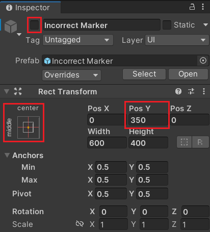 1. Front Panel에 Incorrect Marker 배치 및 SetActive(false)
