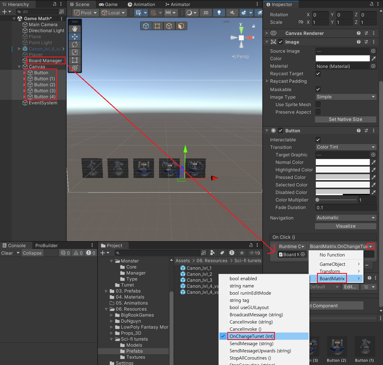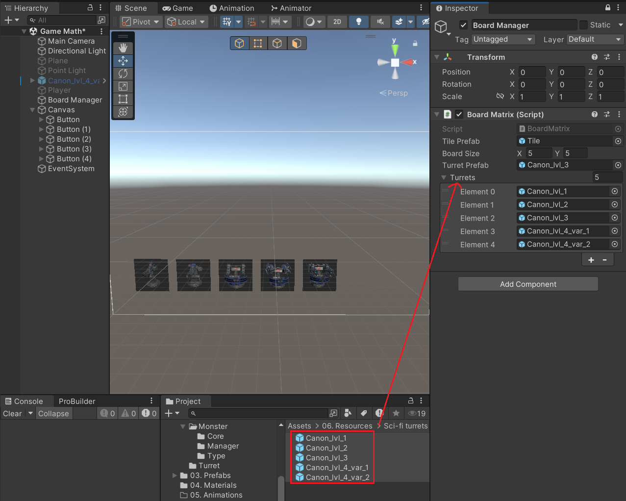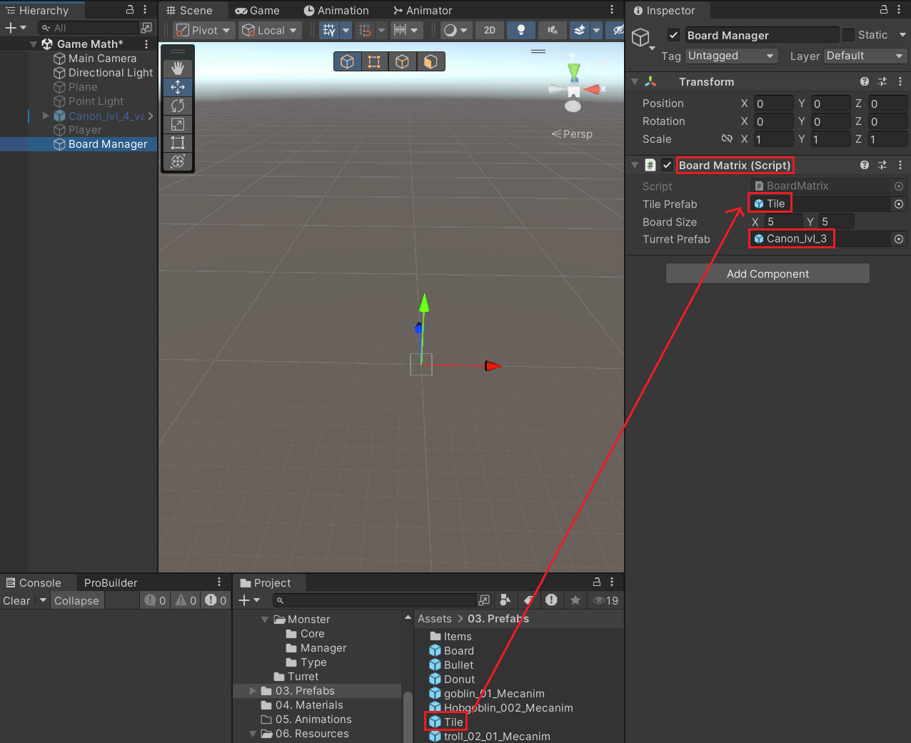 >> 빈 게임 오브젝트로 'Board Manager' 생성 후, BoardMatrix.cs 추가 및 바인딩
