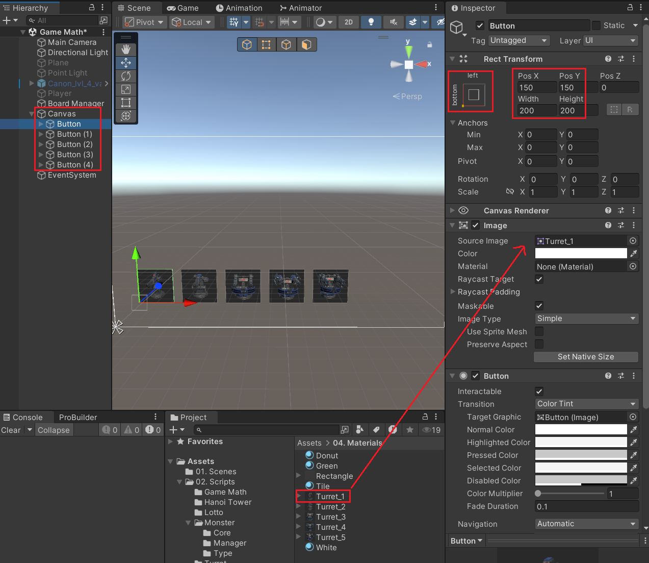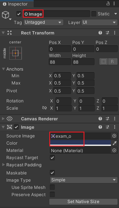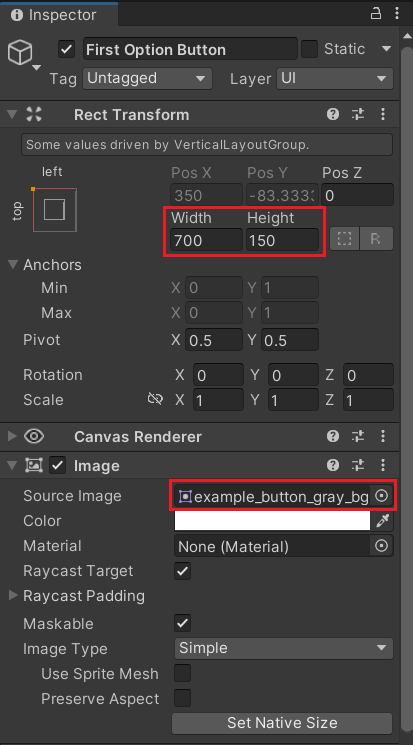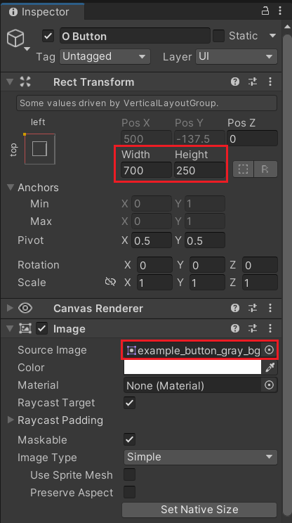 1. QuizCard Prefab의 O Button의 Source Image 변경 및 Width와 Height 조정