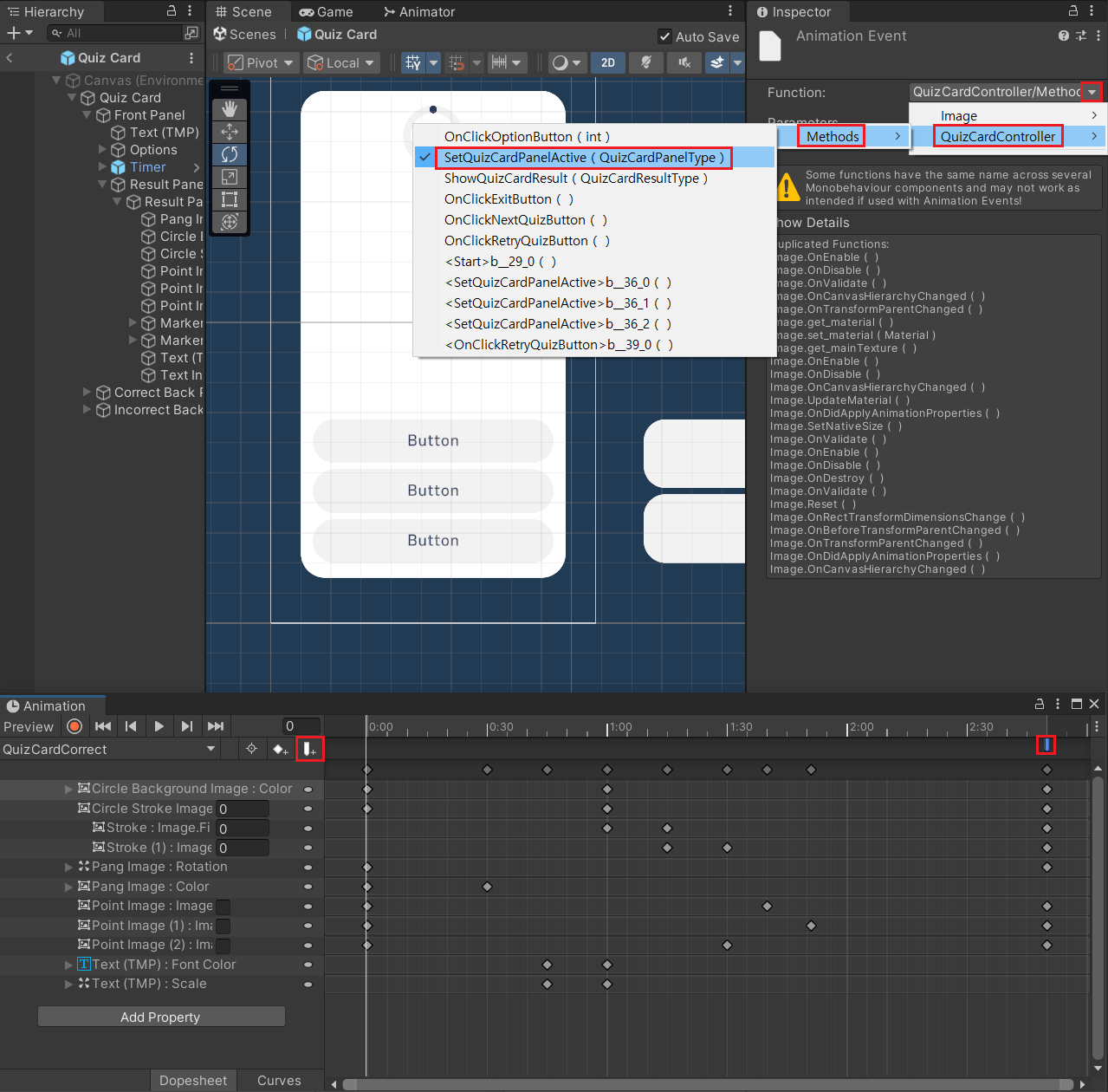 >> Quiz Card에 Animator 추가하여 Animation 구현