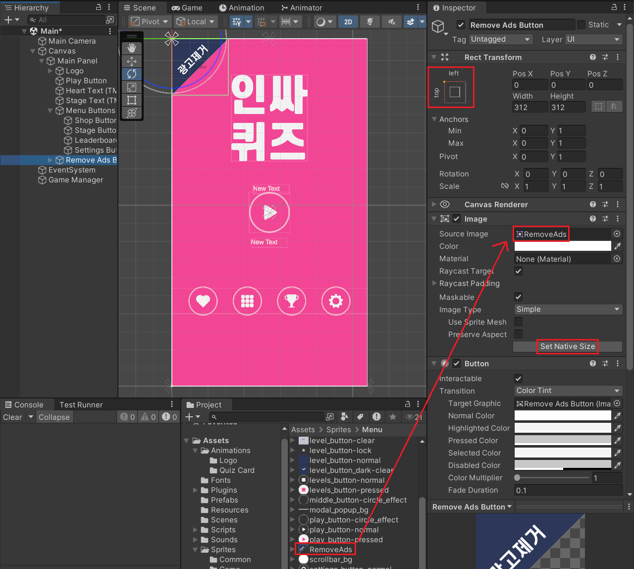 >> Menu Button들의 Image 변경 및 자식의 Text 삭제