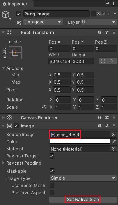- Pang Image : [0 ~ 30프레임] Color의 Alpha 값을 0 ~ 40으로 변경 / [0 ~ 170프레임] Rotation.Z 값을 0 ~ 360으로 변경