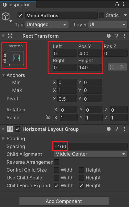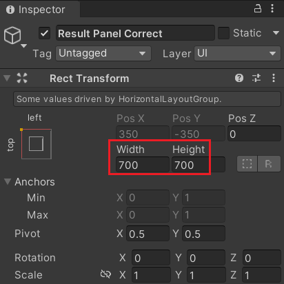 --> 원래는 Correct와 Incorrect를 따로 구현하려고 해서, Horizontal Layout Group 을 추가하고 Spacing을 200 줬었다