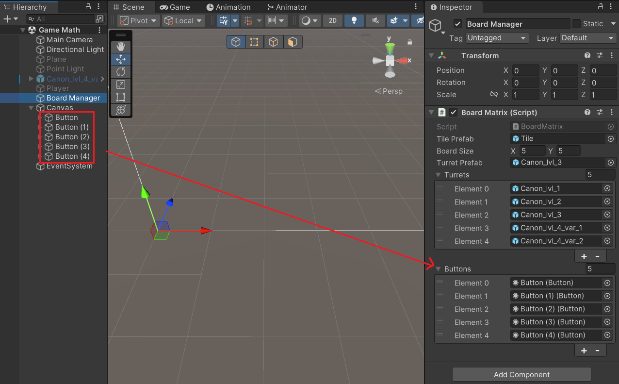>> 'Game Math' Scene에서 Turret 생성 Button에 대해 Delegate 활용