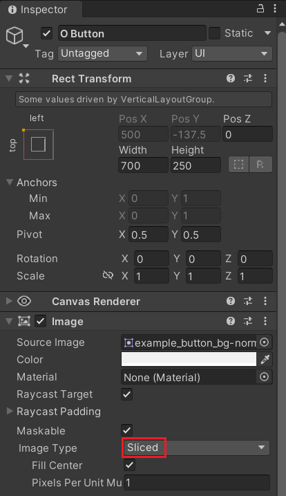 : 'FirstOptionButton'에 넣은 Source Image의 'Set Native Size'가 800x146이고 Button 사이의 간격을 20으로 둔다면 'Three Option Buttons'의 Height는 (146*3) + (20*2) = 478이 된다.