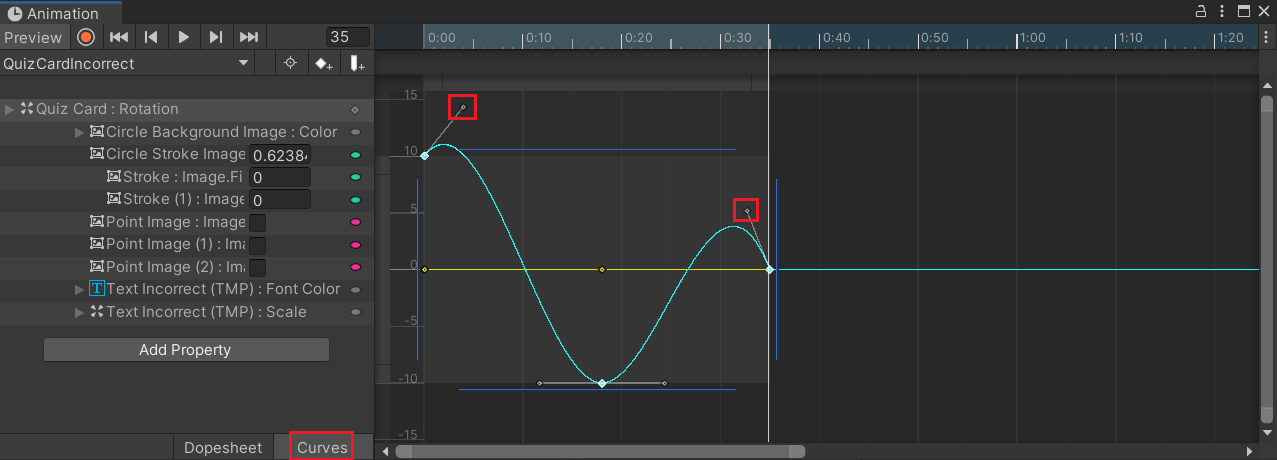 ※ Quiz Card의 Rotation 변화를 Curves로 더 다채롭게 바꾸기
