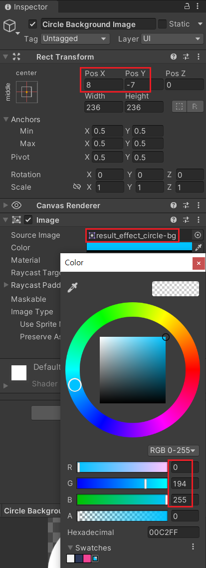 - Circle Background Image : [0 ~ 60프레임] Color의 Alpha 값을 0 ~ 1로 변경