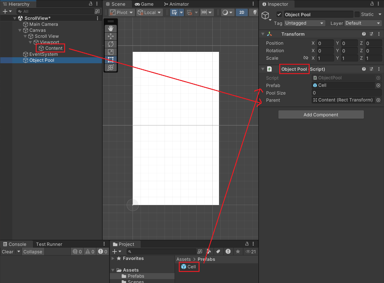 >> 빈 게임 오브젝트로 'Object Pool' 만들고 Object Pool.cs 추가 및 바인딩