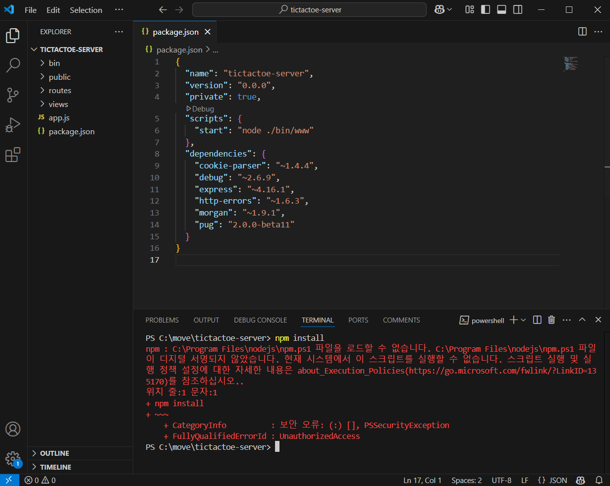 --> 이후 프로젝트가 생성된 경로로 이동 (cd tictactoe-server)