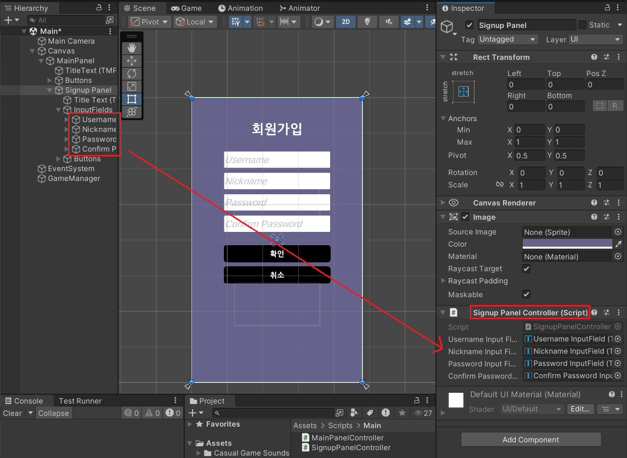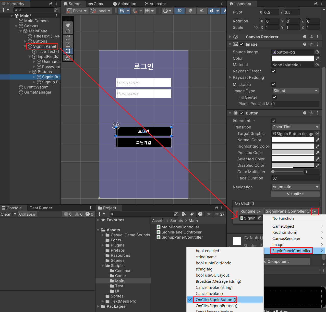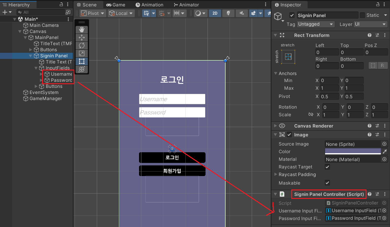 >> Hierarchy에 있는 'Signup Panel'을 다시 Prefab 해제한 다음 'Signin Panel'로 변경