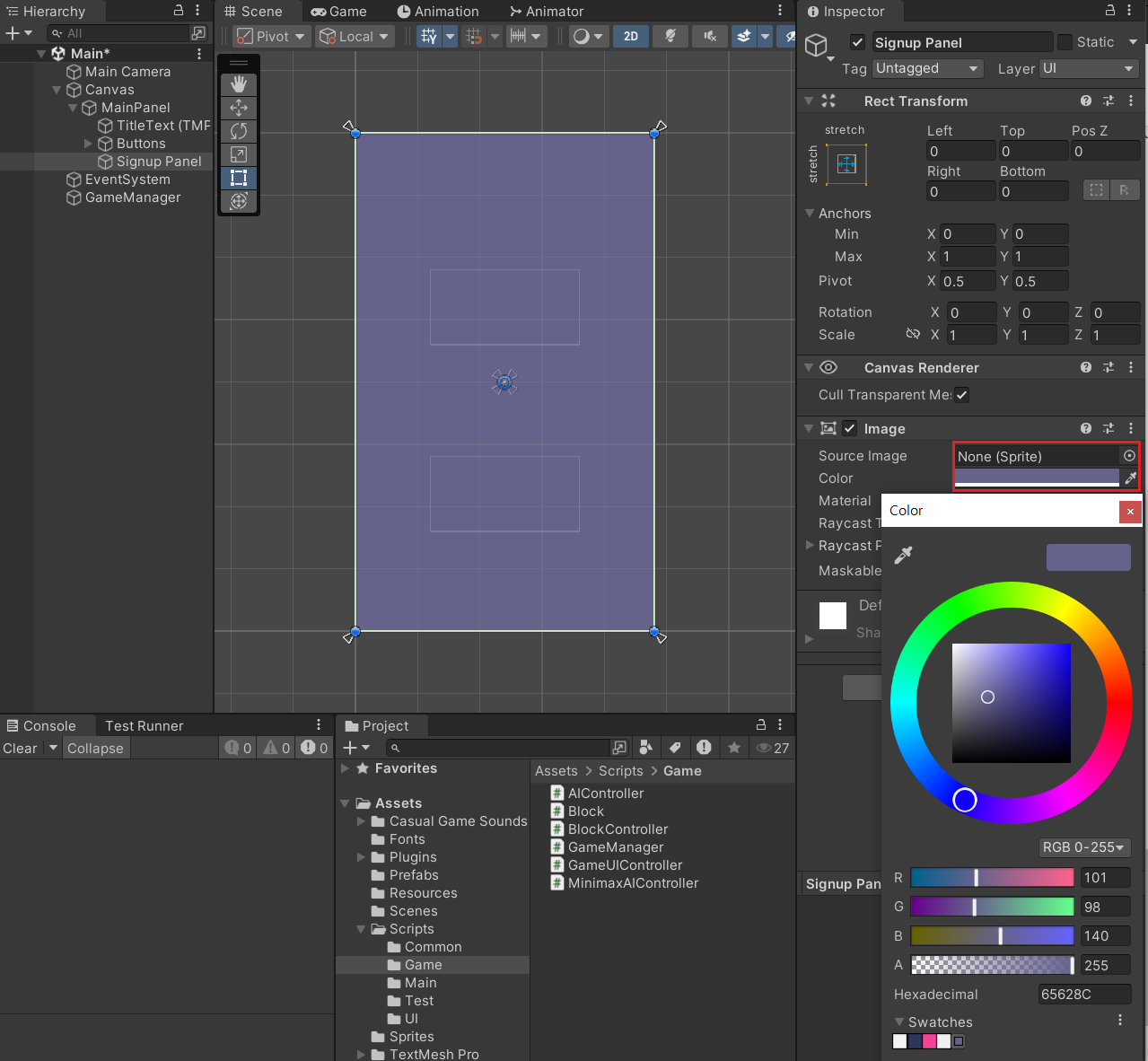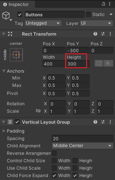 >> 'Signup Panel'의 자식으로 빈 게임 오브젝트로 'Buttons'를 만들어서 Vertical Layout Group 추가