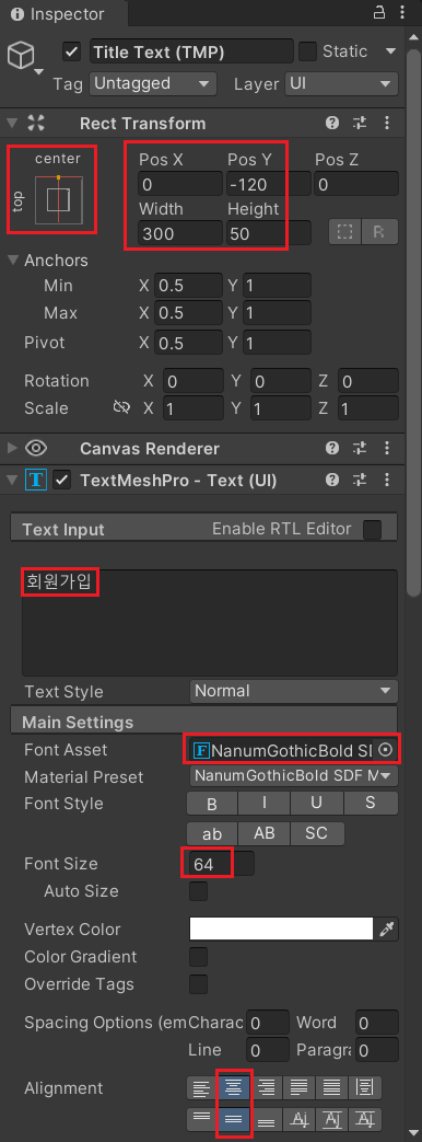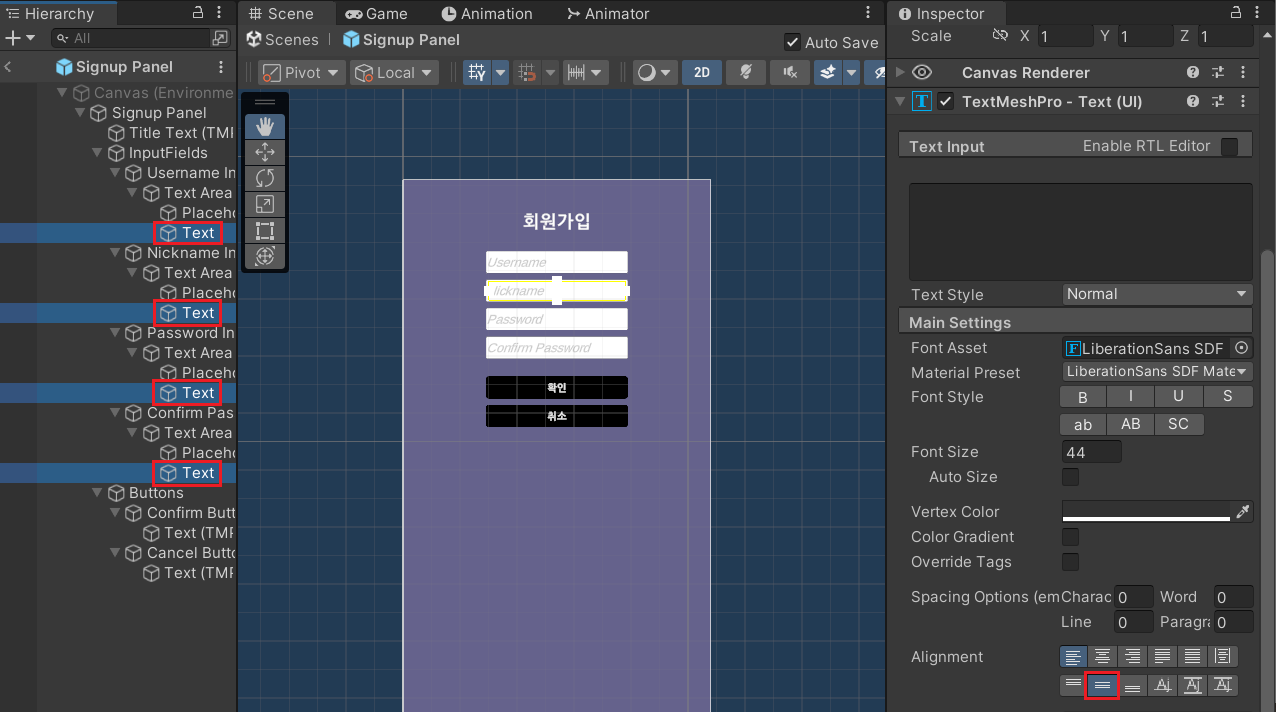>> 'Signup Panel'의 자식으로 Title Text 생성