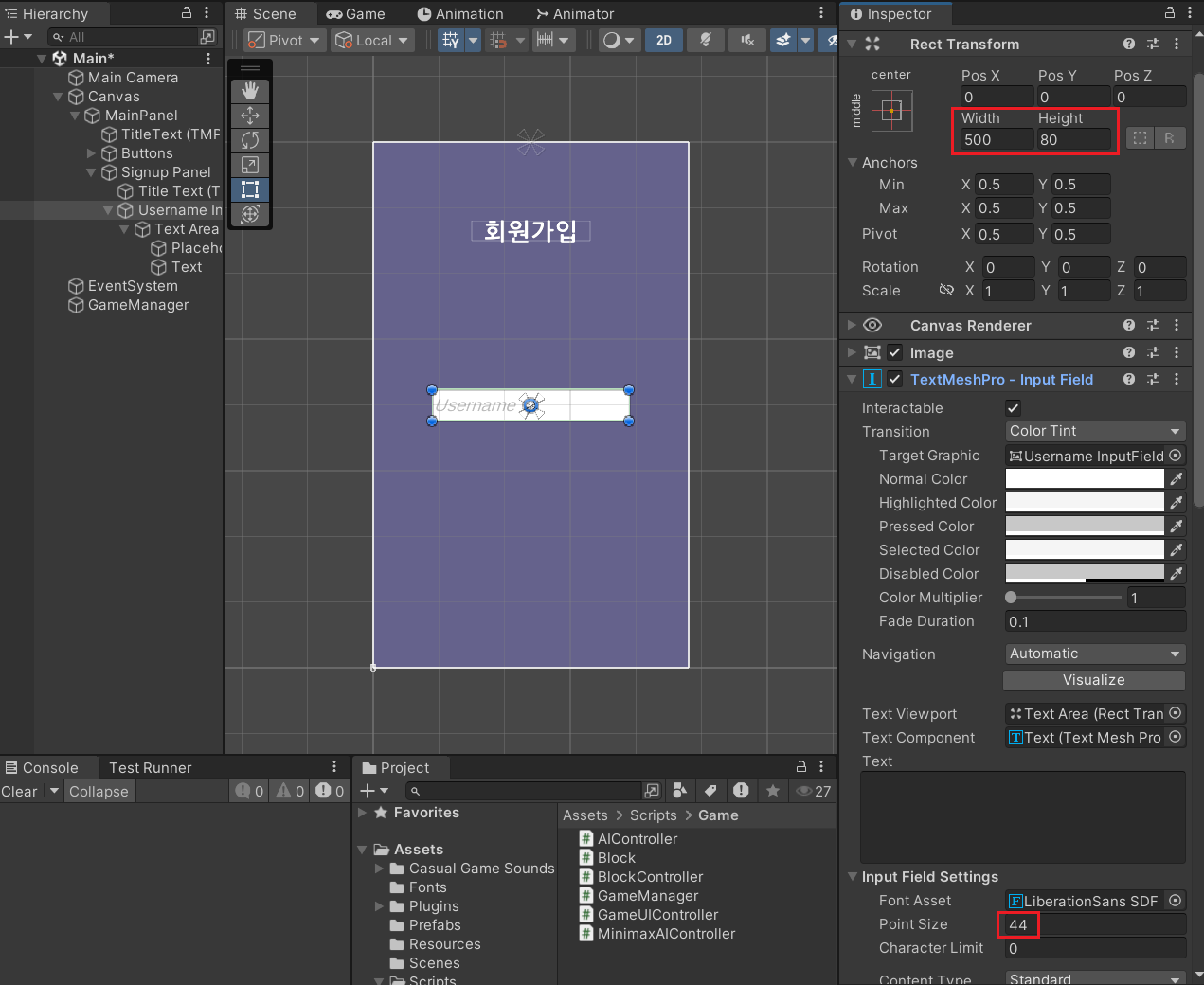 >> 'Signup Panel'의 자식으로 'Username Input Field' 생성