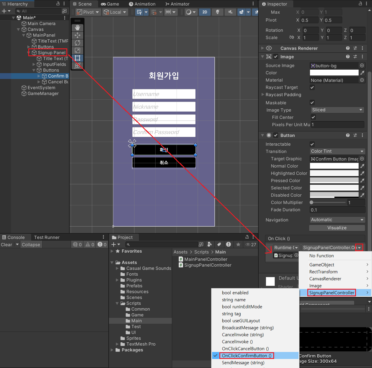 >> 'Signup Panel'의 자식으로 Confirm Button 생성