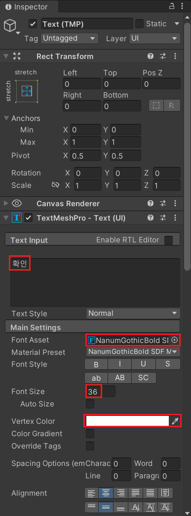 --> InputFields의 모든 Text들의 Alignment를 Middle로 세팅