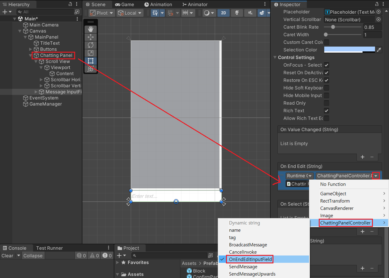 >> Message InputField의 OnEndEdit(string)에 함수 추가 및 바인딩