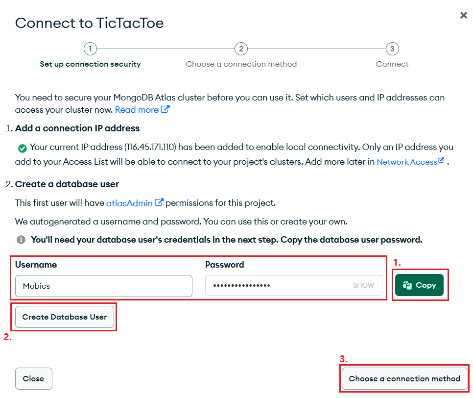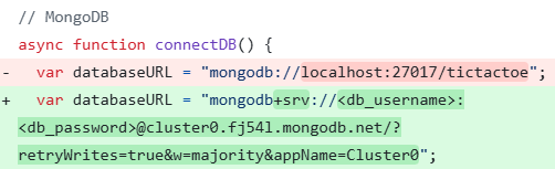 4. 나온 deployment 링크를 복사하여 app.js파일의 MongoDB 관련 ConnectDB()에 복붙