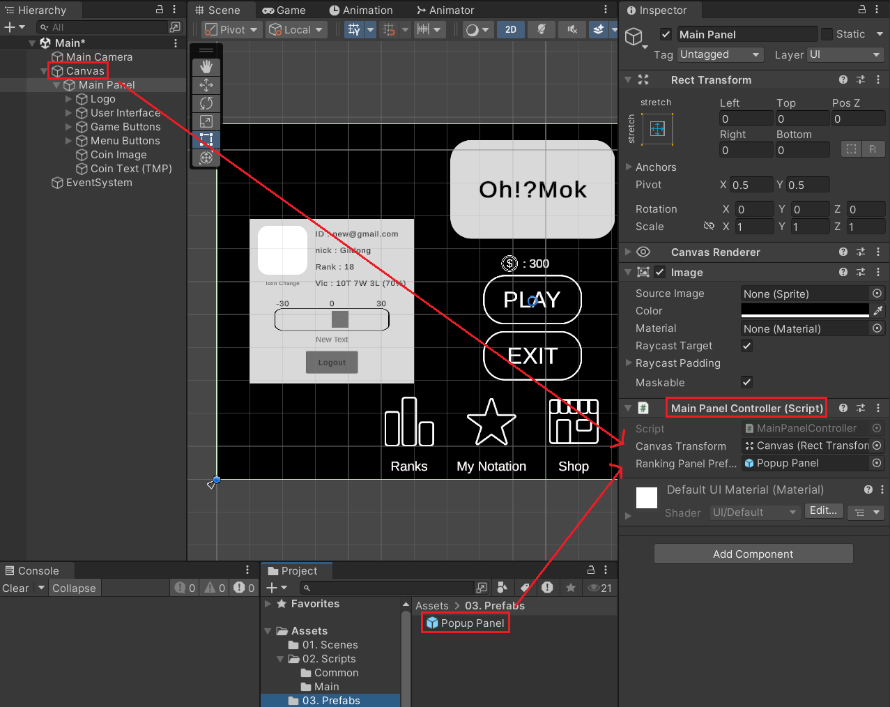 : Prefab으로 'Popup Panel'을 바인딩한 것은 임시로 테스트하기 위함