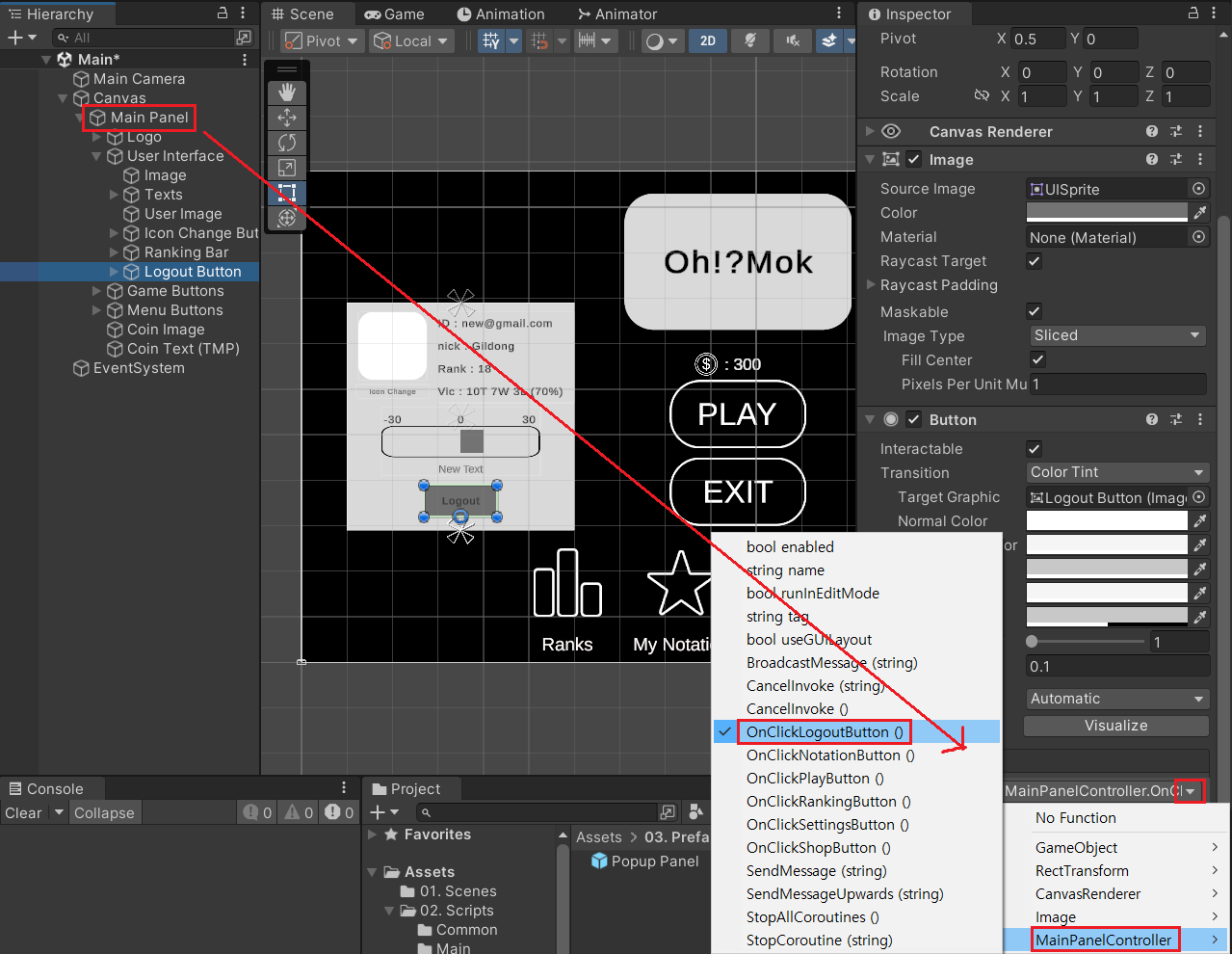 : Main Panel의 Button들을 눌렀을 때 호출되는 함수들을 정의