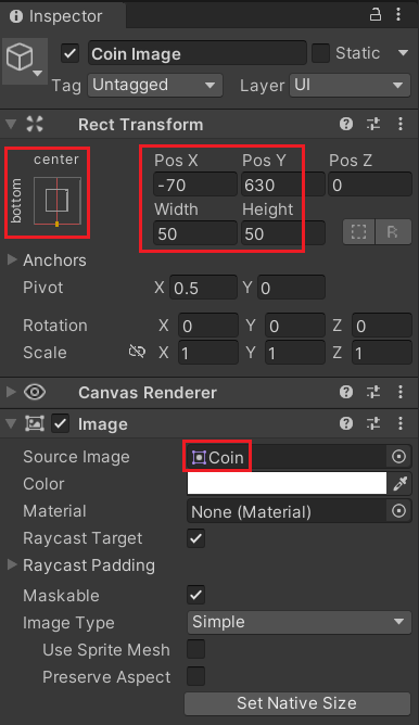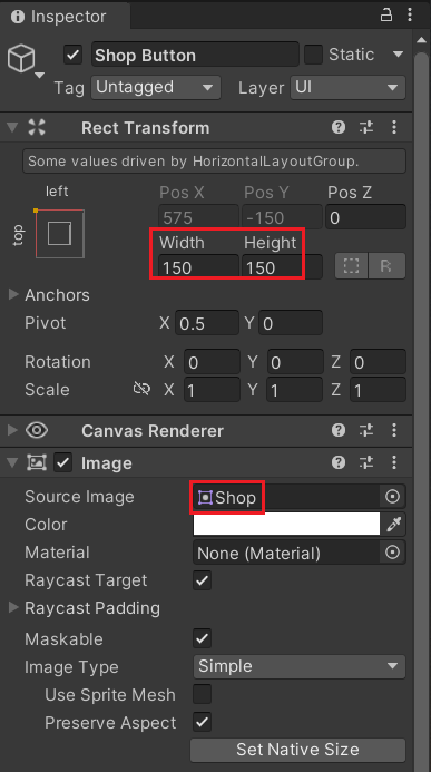 : 빈 게임 오브젝트로 생성, Horizontal Layout Group 추가 및 설정