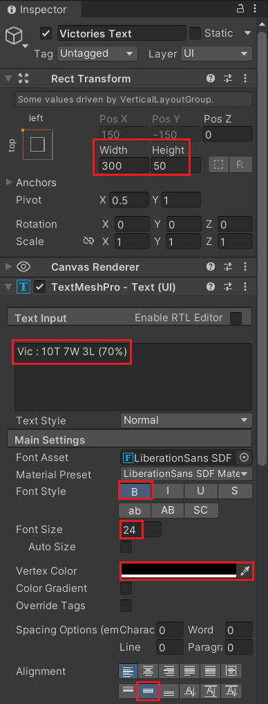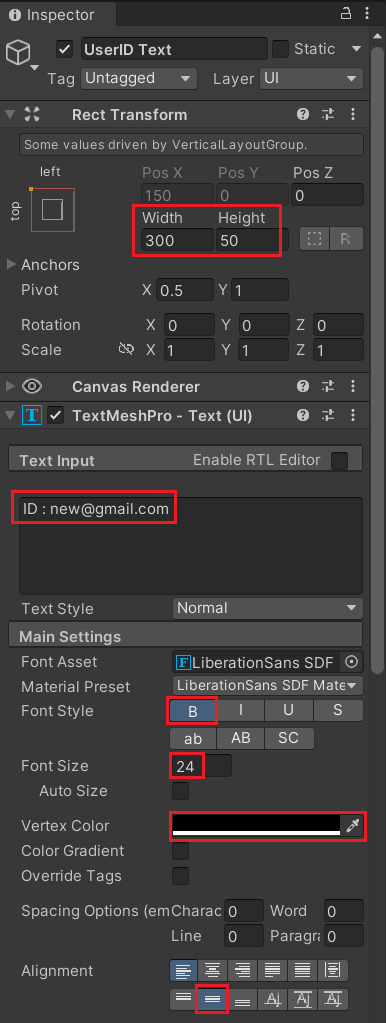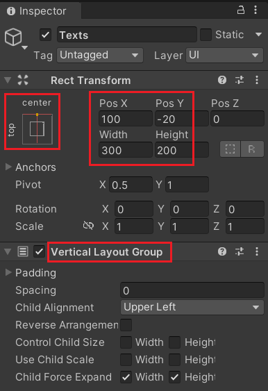 : 빈 게임 오브젝트로 생성, Vertical Layout Group 추가 및 설정