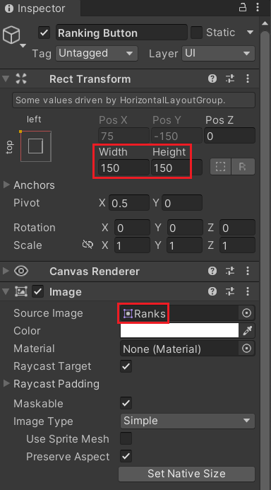 : 'Dark UI' - 'Prefabs Button' - 'Ranking Button' 을 가져와서 Prefab을 해제한 다음 사용